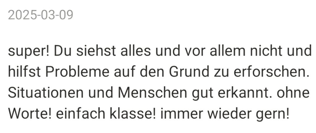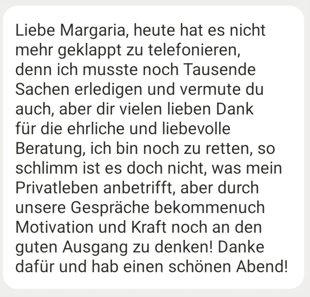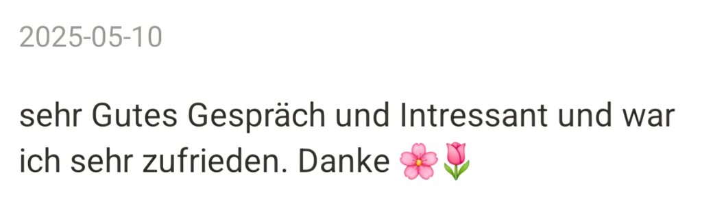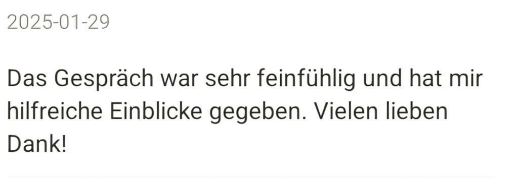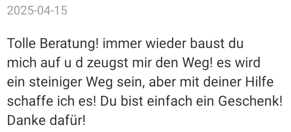 Auch nach der Sitzung bin ich für Rückfragen da und unterstütze dich bei der Integration deiner neuen Einsichten in den Alltag.