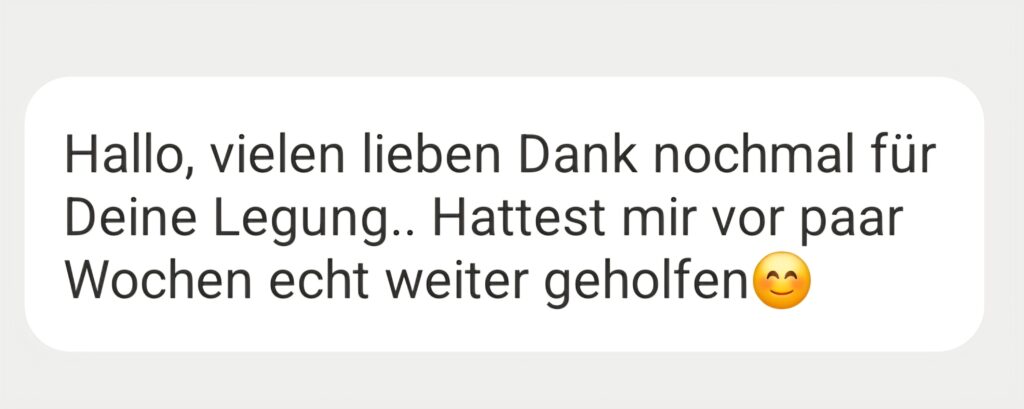 Nachdem das Formular eingegangen ist, melde ich mich persönlich bei dir auf WhatsApp, um einen passenden Termin für die Beratung zu vereinbaren.